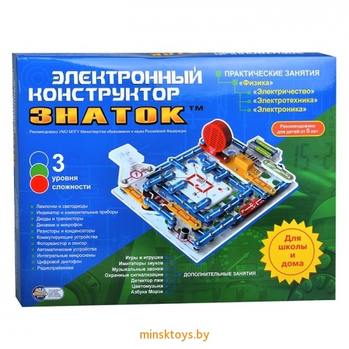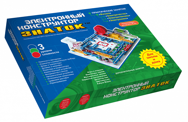 Электронный конструктор Знаток - это 21 практическое занятие для школы и множество схем для дополнительных занятий. Основная задача практических занятий – показать связь между школьной программой и окружающей нас современной жизнью. Именно поэтому конструктор содержит элементы, которые присутствуют практически во всей окружающей нас технике – компьютерах, телефонах, автомобилях, фото и видеокамерах, телевизорах, музыкальной аппаратуре.