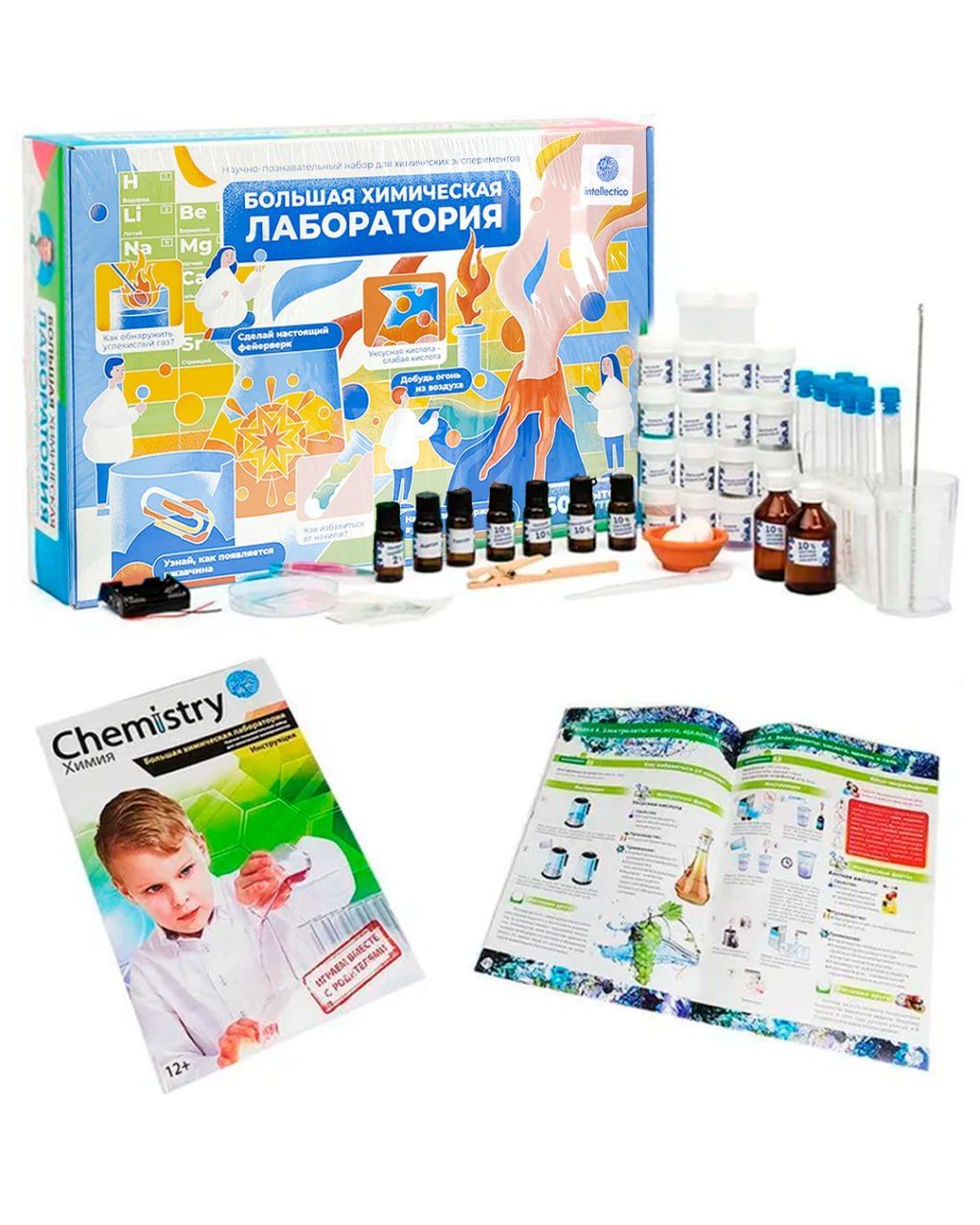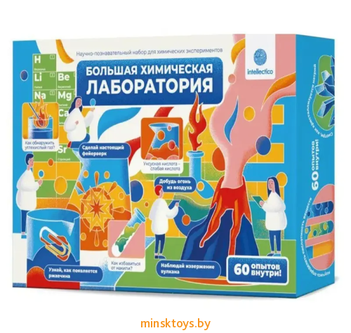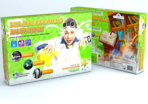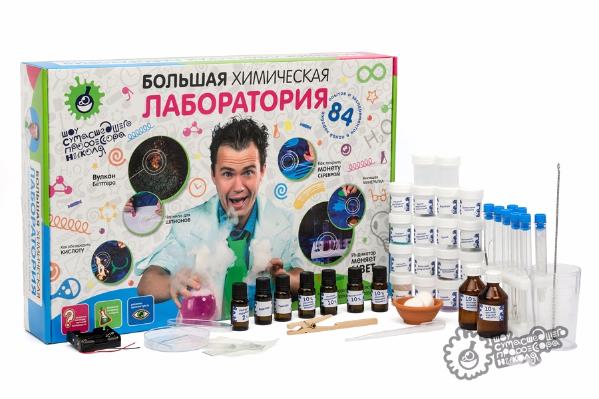 В набор "Большая химическая лаборатория" входят все опыты, которые включены в малые наборы. Тут есть и опыты с огнем, и экперименты с водой, и исследование металлов, и многое другое. Набор понравится даже самым искушенным любителям химии.