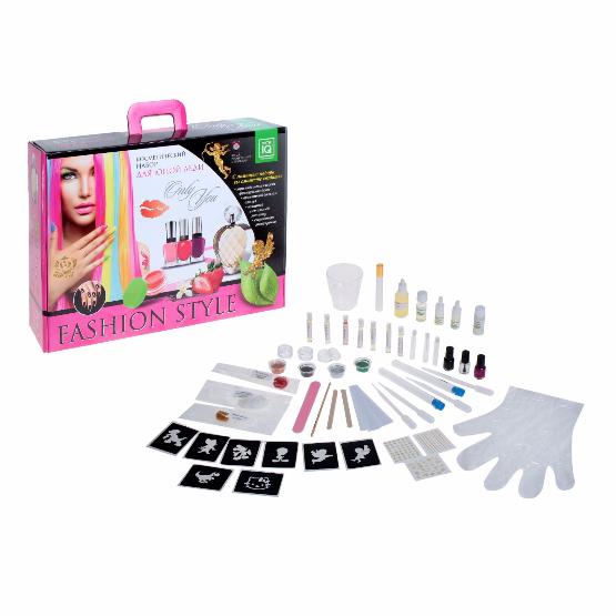 Косметический набор Fashion Style из серии "Для Юной Леди" - комплект косметический принадлежностей, который научит маленькую принцессу делать уникальные вещи. В данном наборе девочка найдет для себя несколько способов сделать уникальные, личные и неповторимые духи, которые будут подходить именно ей, а также делать маникюр, вкусный, гипоаллергенный бальзам для губок и различные яркие и сверкающие татуировки.
