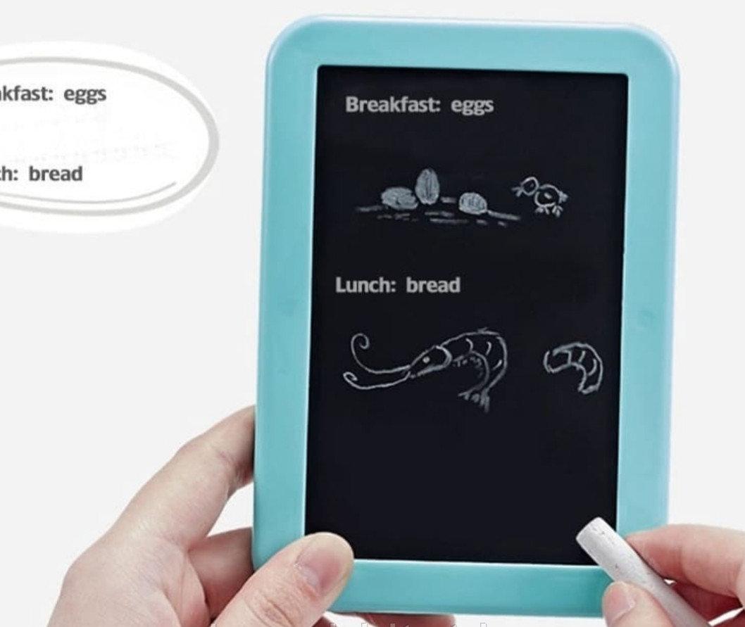 Небольшая, но удобная меловая доска позволит записать сегодняшнее меню или стоимость поданных блюд. А если ребёнок ещё не умеет читать или писать - он может их просто... нарисовать!