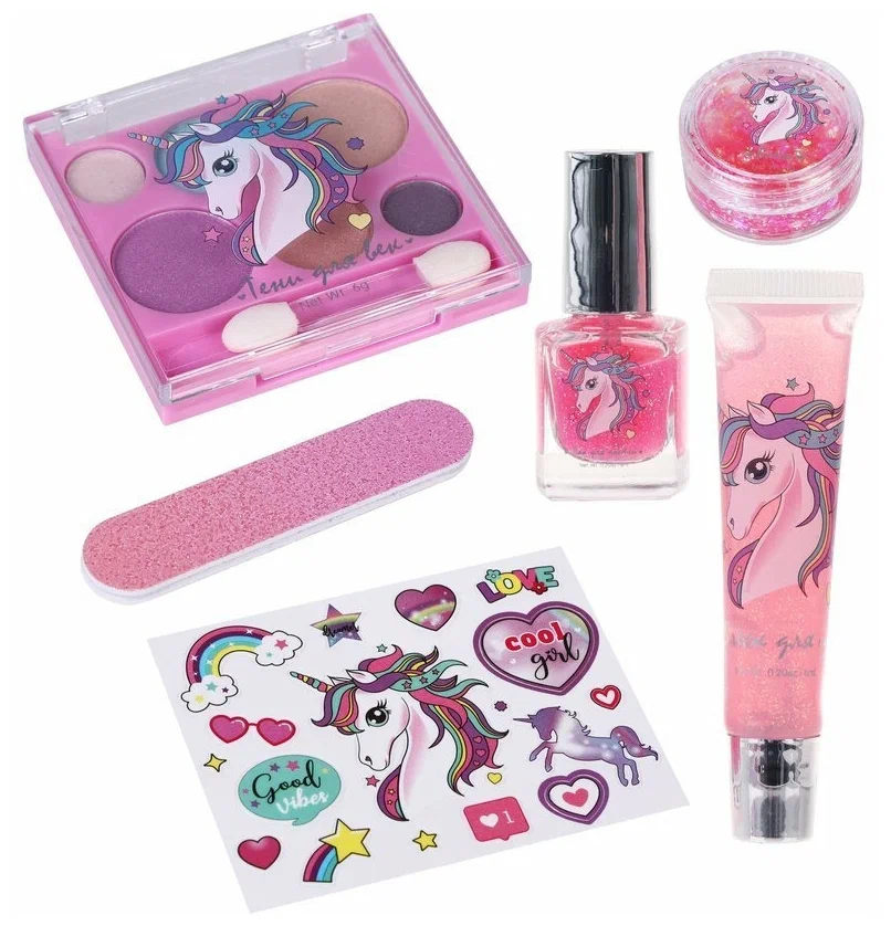 Набор детской декоративной косметики «Единорог» предназначен для макияжа лица и ухода за ногтями. Косметические средства поставляются в симпатичном рюкзачке.