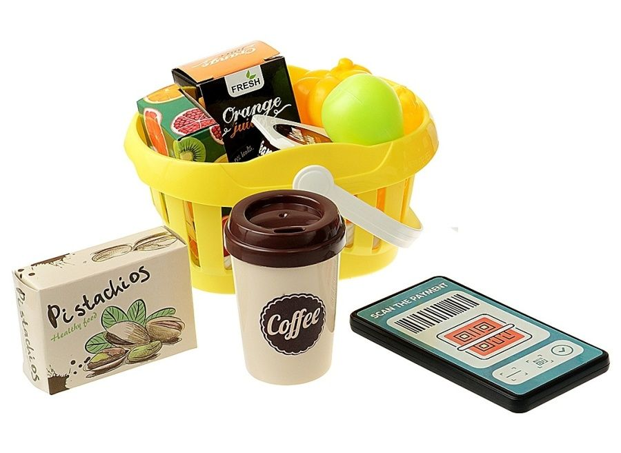 В наборе 36 предметов, включая кассу, фрукты и овощи, продукты, деньги и сканер. Все предметы выполнены из качественных материалов, безопасных для детей. Касса имеет удобный дизайн и легко собирается. Она оснащена кассовым аппаратом, который работает на батарейках и издает звук при нажатии на кнопки.