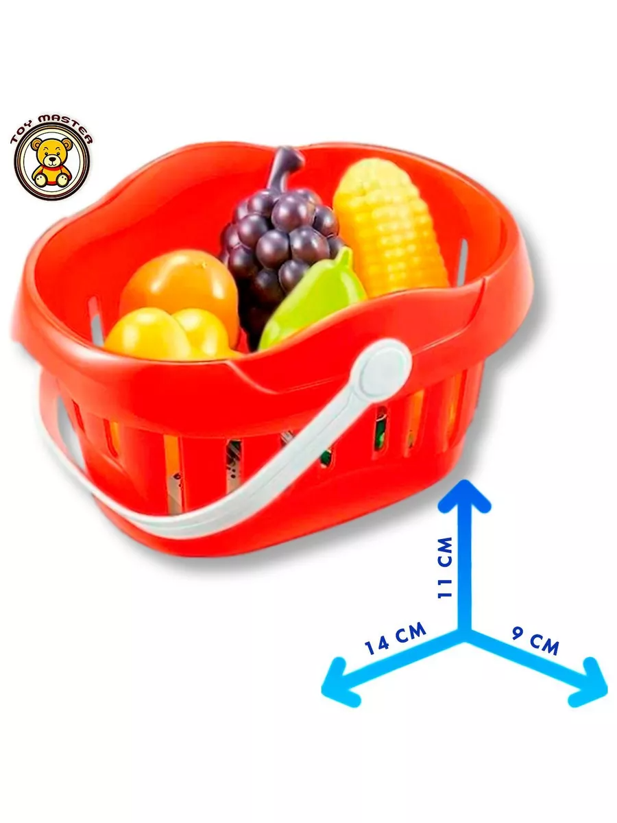 корзина для продуктов (14х9х9 см.), монеты и купюры, карточка, фигурки продуктов, |