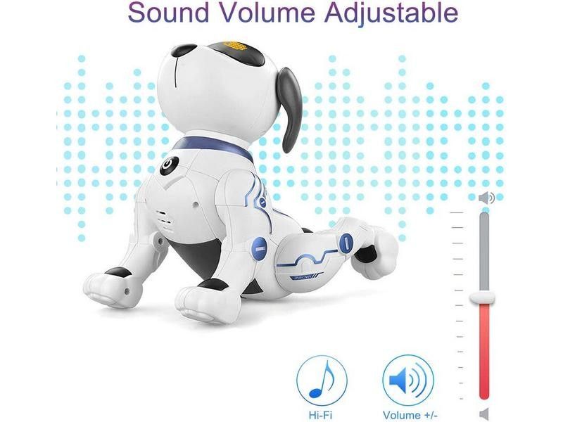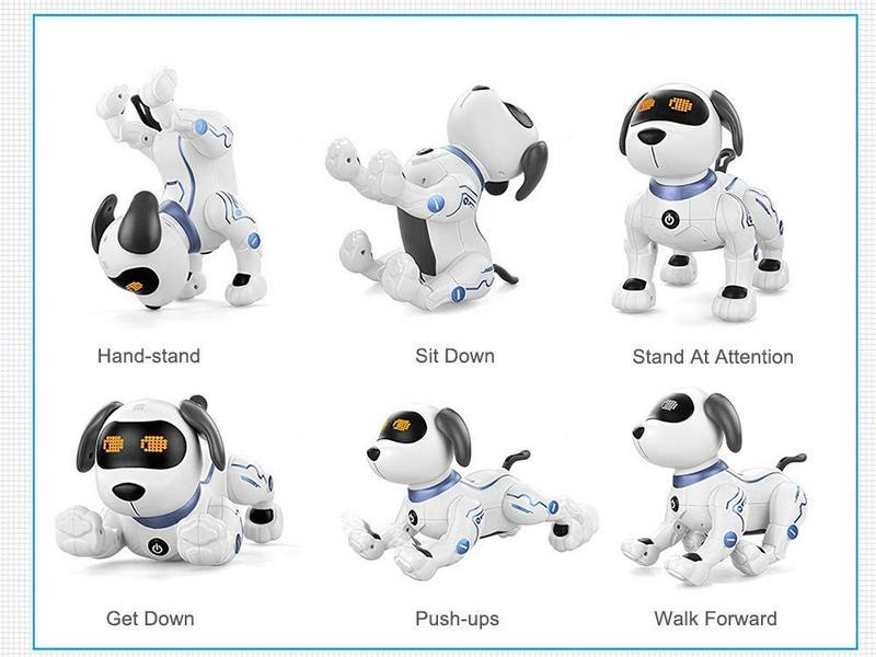 К16 способна выполнять голосовые команды. Нажав кнопку голосового режима, дайте устный приказ собаке. Она знает команды: встать на передние лапы, сидеть, стоять, лежать, отжиматься, двигаться вперед. Под динамическую музыку (4 музыкальные композиции) собачка танцует.