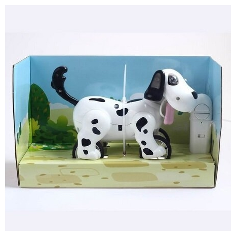 Игрушка послушно выполняет команды, поступающие с пульта дистанционного управления: резво бегает, весело лает, переворачивается, ложится и встает, разворачивается вокруг себя, а также делает выпады вперед. Управление роботом осуществляется на частоте 2.4 G.