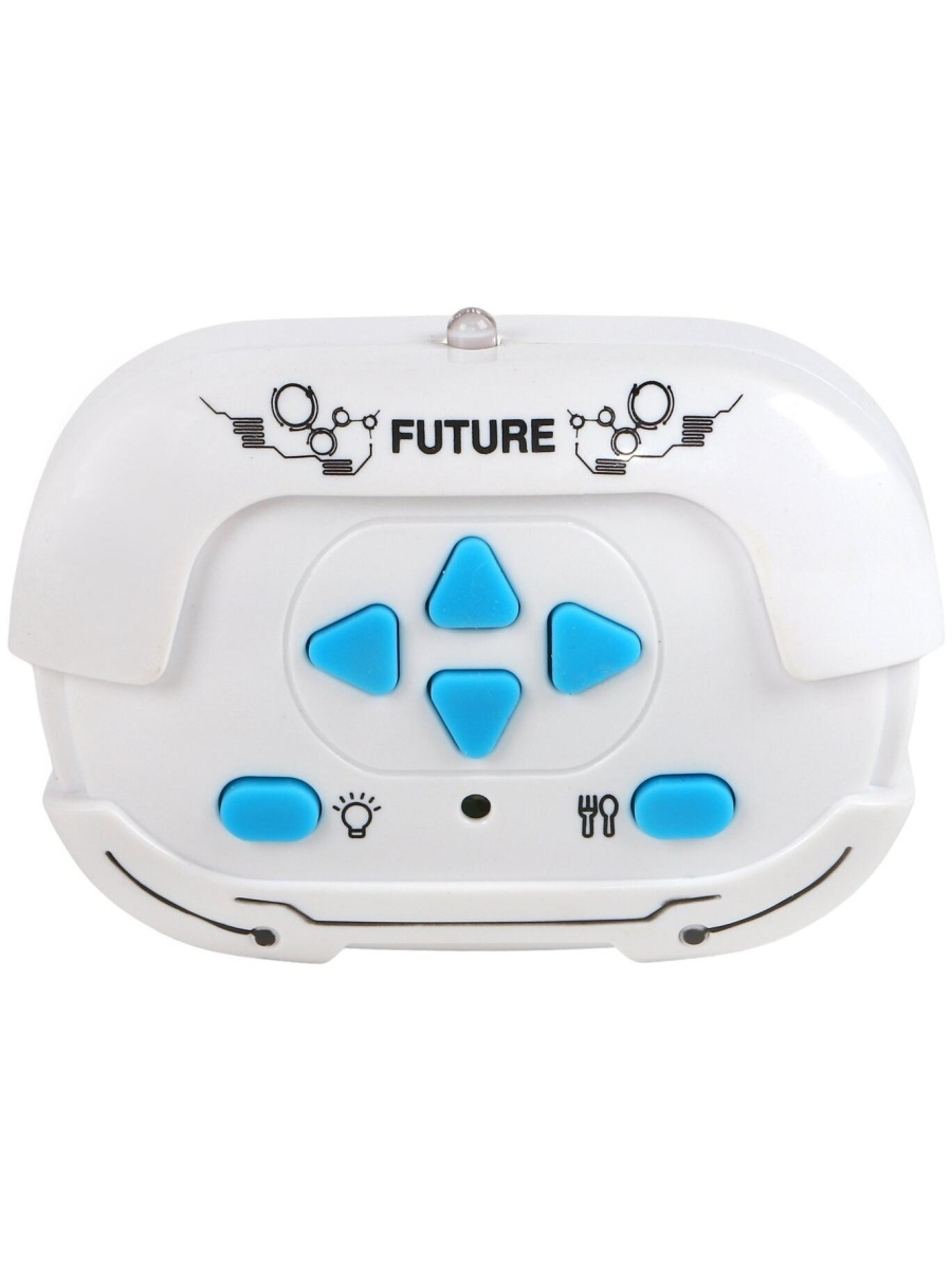 - передвигается на колёсиках вперёд, назад, вправо и влево;
