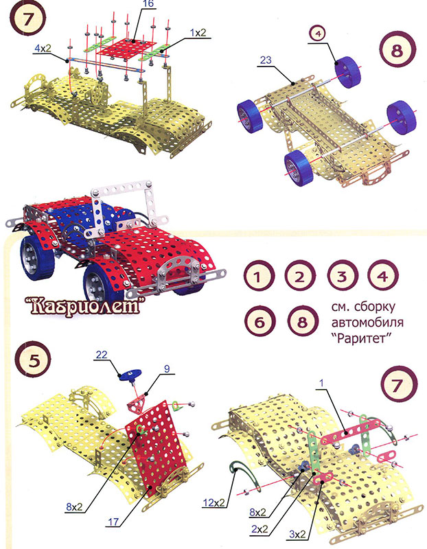 Он состоит как из изделий из металла, так из элементов из пластика, которые придадут готовым изделиям оригинальность. Собрать можно две модели автомобилей: «Раритет» и «Кабриолет».