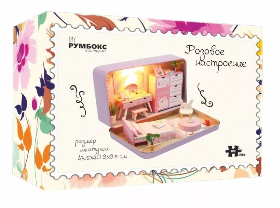 Интерьерный конструктор Румбокс - Розовое настроение, 57 эл, подсветка, HOBBY DAY S932