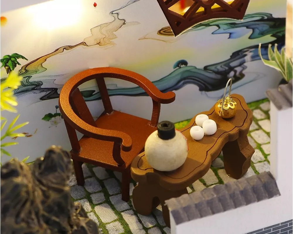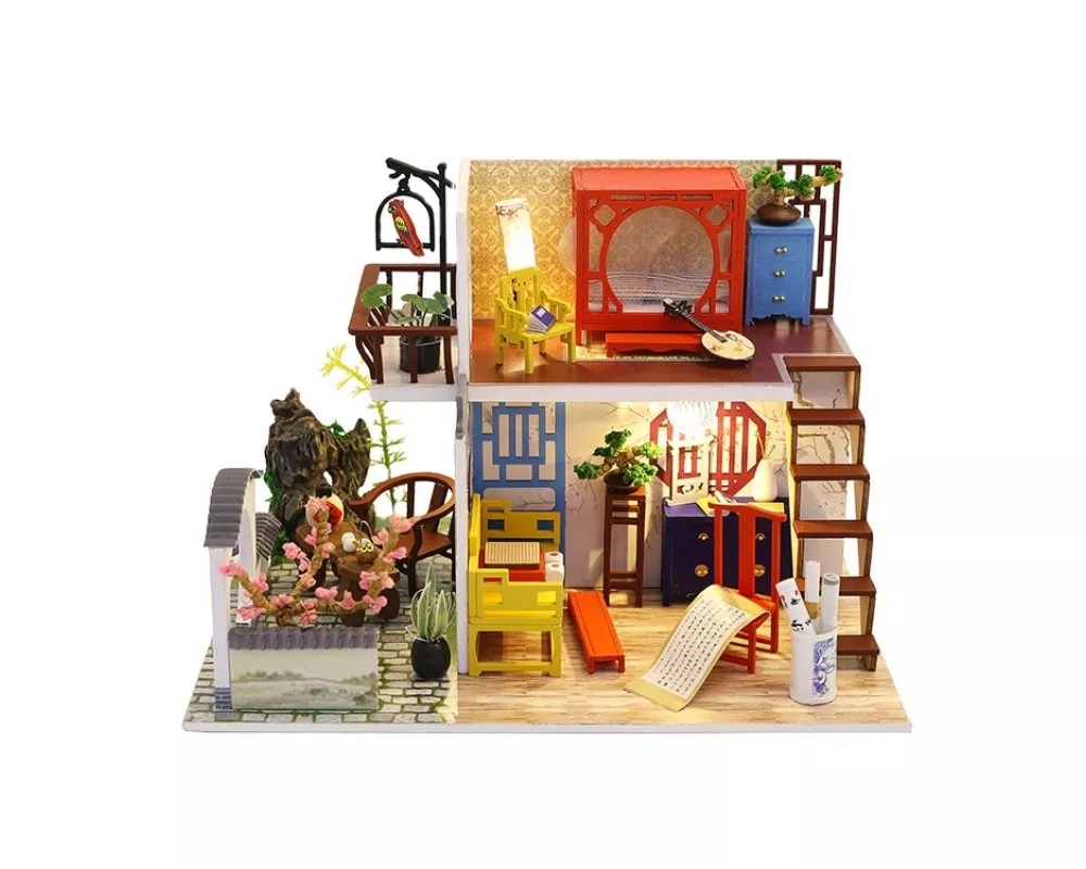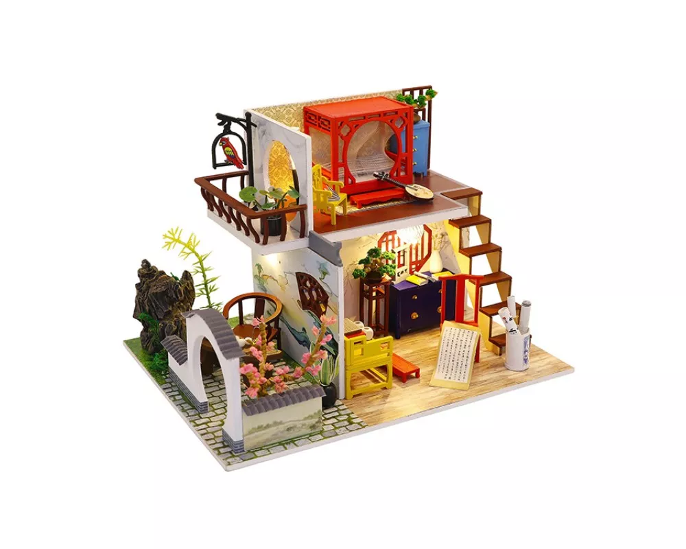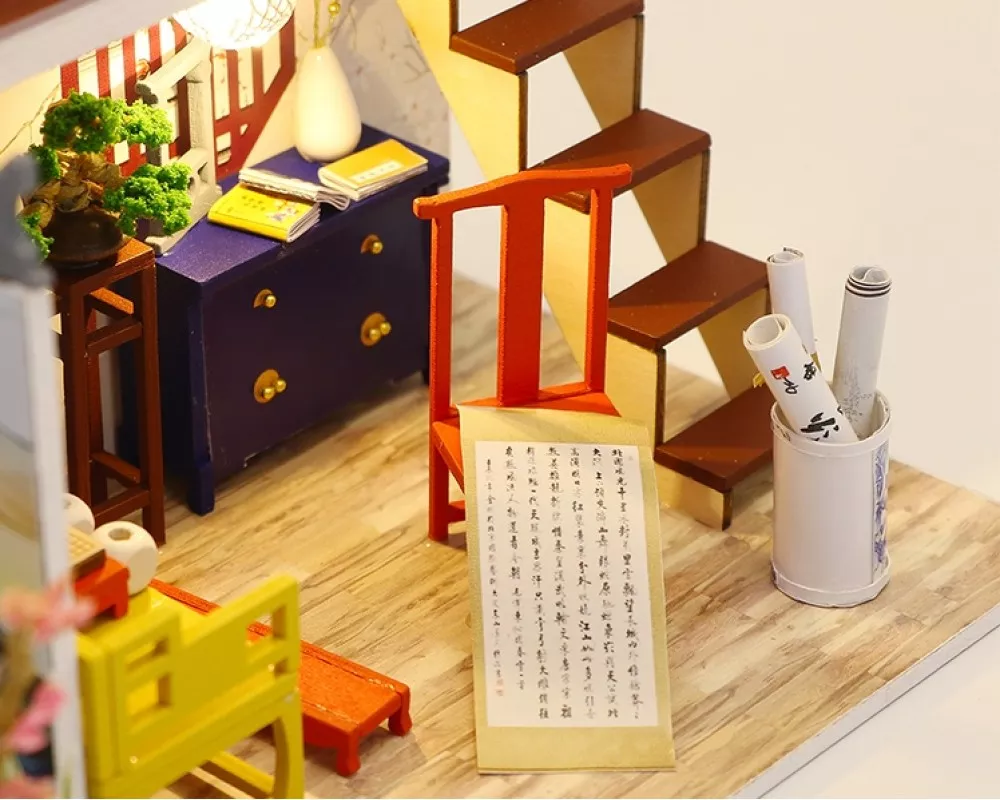 Дело тонкое Очень восточный интерьер. Есть, предположительно, жуань - восточный струнный инструмент, бонсай, сакура... ну и в целом атмосфера, вот словами не описать, но очень хорошо чувствуется. Деревянные ставни на стенах (как-то это наверное называется), свитки, изящество деталей. Почувствуйте весь лоск Востока! Комната-коробка? Это плохо? Нет, это не про очень маленькие квартиры - это такой набор для творчества. Придется знатно потрудиться, но клей, ножницы и никакого мошенничества - и у вас получится настоящий домик в миниатюре. Они очень детальные - внутри такого интерьерного конструктора есть всякие горшки с цветами, картины и даже брошенные книги. Все это создает ощущение вполне реалистичного жилья. Работа по его сборке довольно кропотливая, но результат однозначно того стоит.
