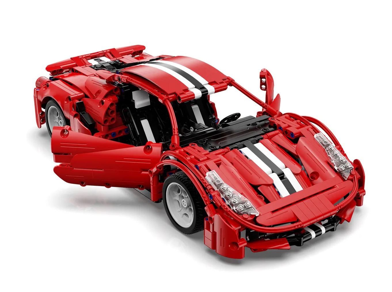 Феррари спортивная машина Ferrari Red Devils конструктор Cada Technic C61049 Модель итальянского спорткара в красном цвете очень реалистична. Широкие колеса с низкопрофильной мягкой резиной и серыми дисками, легко узнаваемая обтекаемая форма кузова, открывающиеся двери и агрессивный спортивный дизайн элементов корпуса. Рулевое колесо управляет поворотом передней оси. Автомобиль может быть моторизован (набор электрики в комплект не входит).