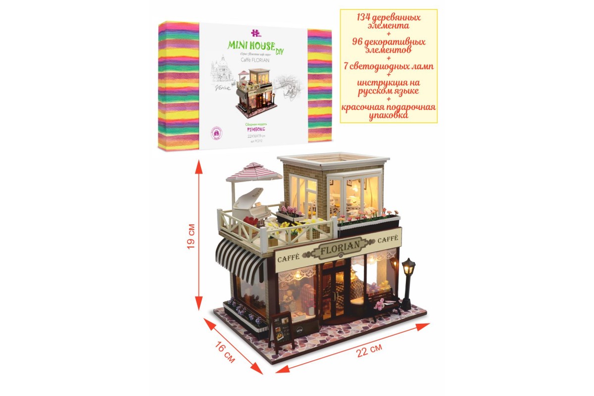 Интерьерный конструктор Румбокс - Caffe Florian, 230 эл, подсветка, HOBBY DAY PC2112