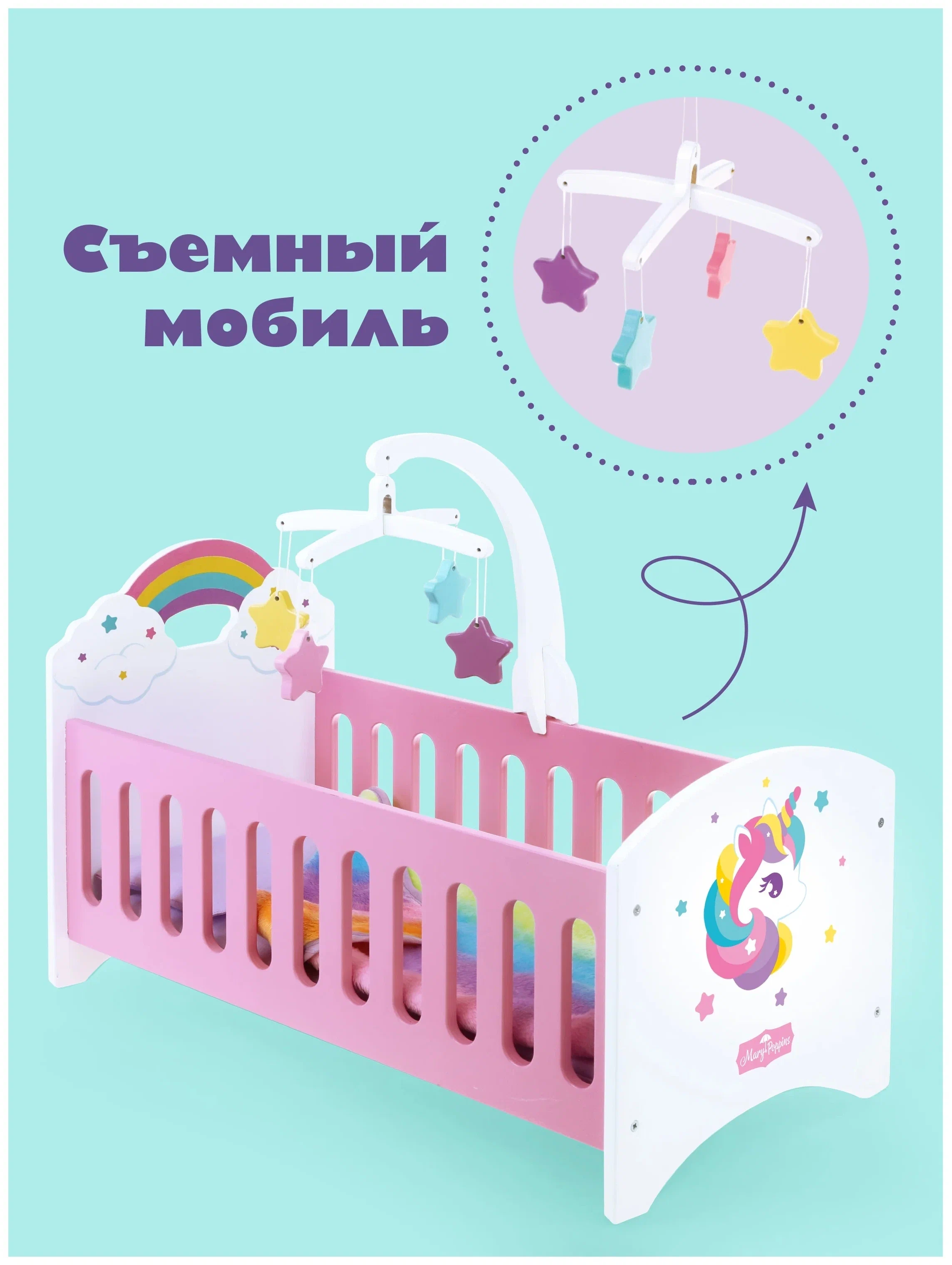 Кроватка для куклы с каруселькой Единорог розовый, Mary Poppins 67421