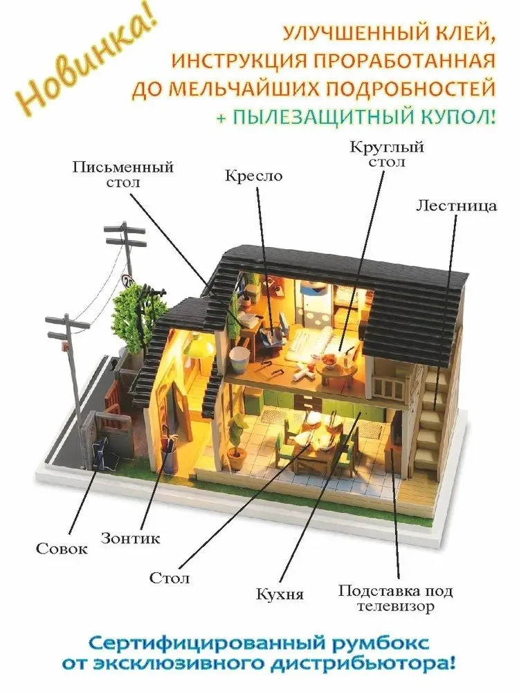 - Состав: Детали изделия, русская инструкция, светодиоды (комплект для освещения) инструменты.