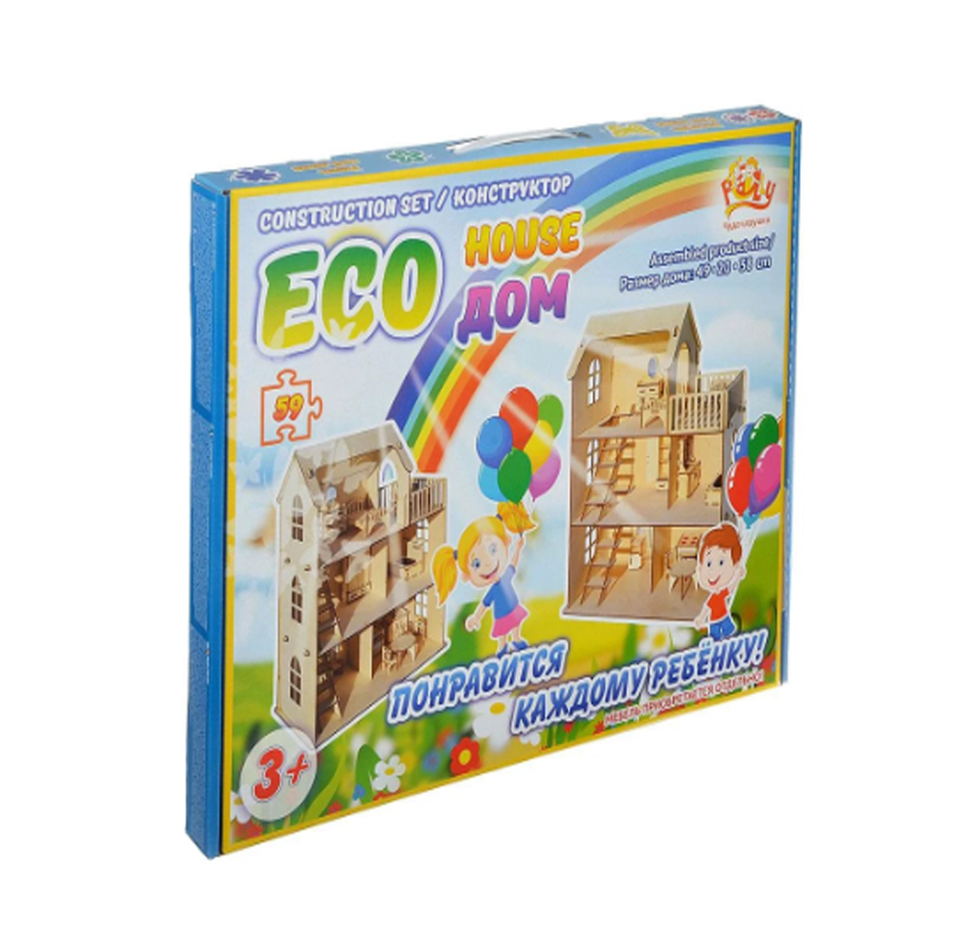 Дом для кукол - ECO Дом, конструктор деревянный, ДК-1-004