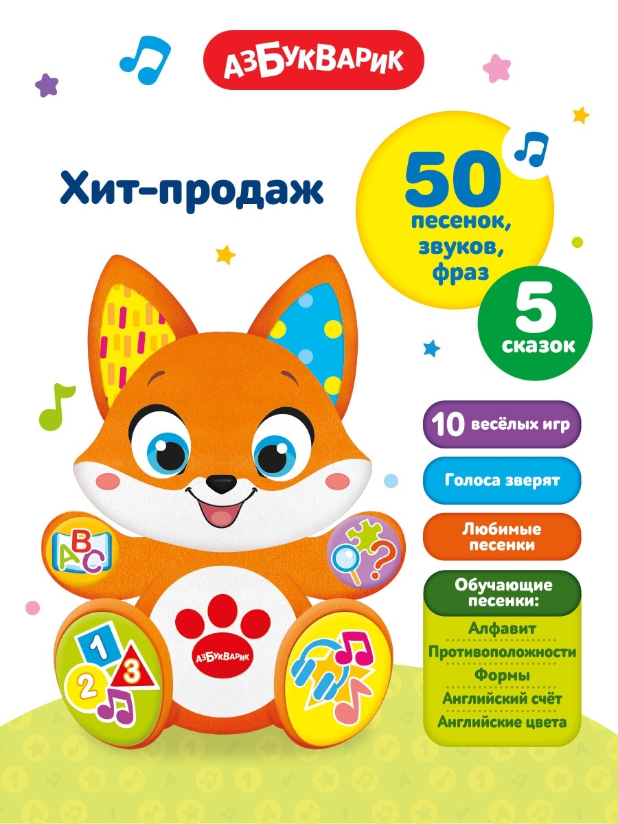 Развивающая музыкальная игрушка Лисенок-сказочник, Азбукварик 4680019286822