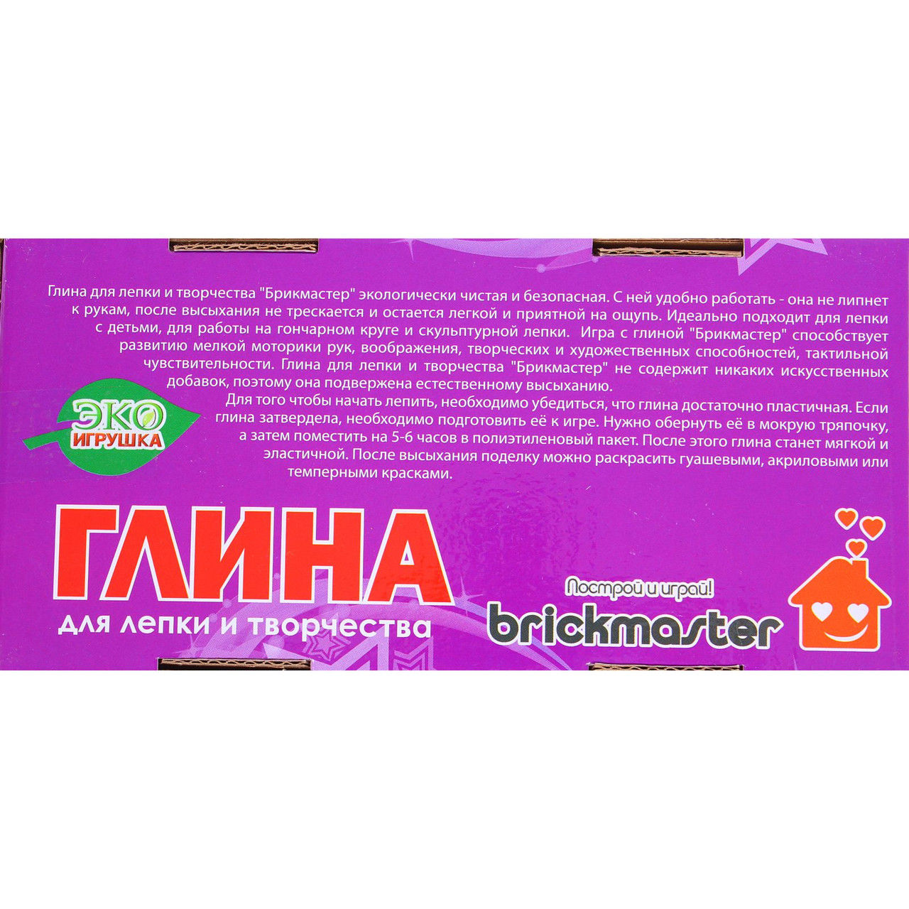 Детская глина для лепки и творчества Брикмастер увлечет вашего ребенка в интересный и созидательный процесс. Лепить различные фигурки из глины так же легко, как и из пластилина, при этом изделия из глины отличаются долговечностью и прочностью. Фигурки из этого материала можно расписывать акрилом или красками для керамики.