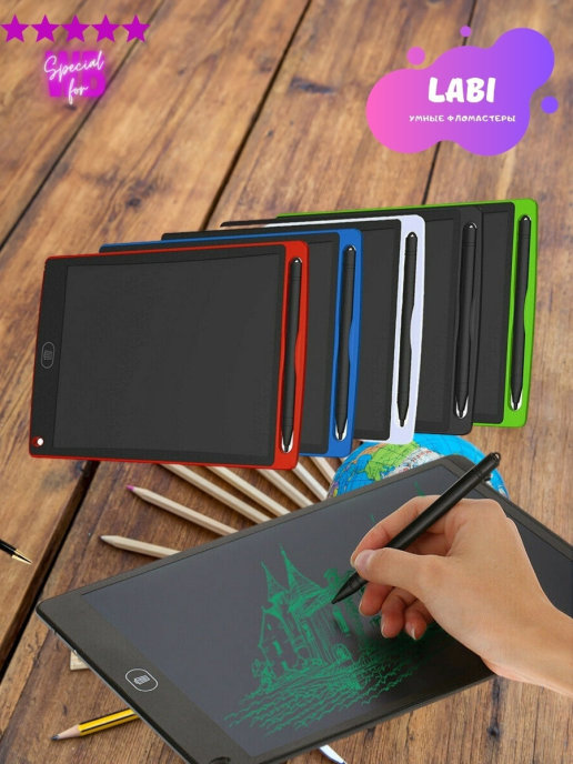 Электронный планшет для рисования и заметок LCD Writing Tablet позволит вам делать различные временные заметки, не расходуя постоянно листы бумаги. С планшетом вы сможете фиксировать важные данные во время телефонного разговора. А дети смогут рисовать на нем любые свои фантазии. Планшет выполнен из надежного, безопасного пластика и оснащен ярким жидкокристаллическим дисплеем с диагональю 12 дюймов. Экран и корпус устойчивы к падениям и царапинам, благодаря чему, планшет можно не опасаясь доверять ребенку, не переживая за сохранность устройства. В комплекте к планшету идет эргономичный стилус. Область применения планшета очень широка. Он может пригодится вам во множестве ситуаций помимо развлечений и работы.