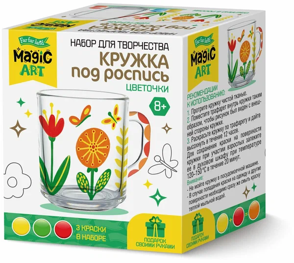 Роспись кружки — это отличный способ объединить семью за одним увлекательным занятием. С помощью различных трафаретов и красок, входящих в комплект, ваш ребенок сможет создать неповторимую композицию на стеклянной поверхности. Яркие цвета и оригинальные мотивы увлекут маленького художника, а совместная работа над проектом укрепит семейные связи и научит вниманию к деталям.