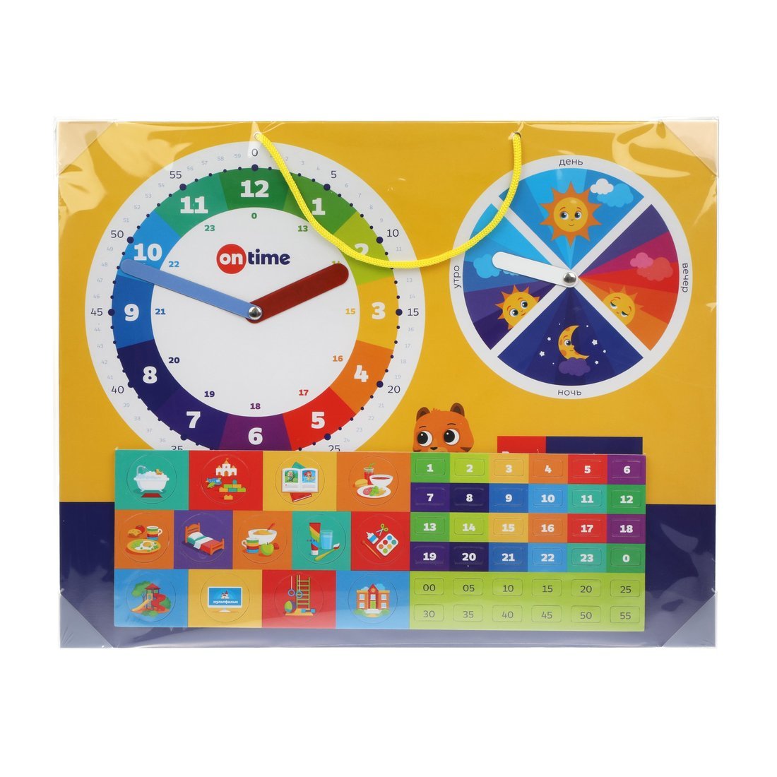 Магнитная доска-планер «Мои первые часы» от ТМ “On Time” поможет ребёнку в лёгкой, игровой форме познакомиться со многими сложными понятиями! С помощью неё ребёнок разовьёт такое важное для жизни качество, как умение ориентироваться во времени, узнает про часы и минуты, а также про такие понятия, как «утро», «день», «вечер» и «ночь».