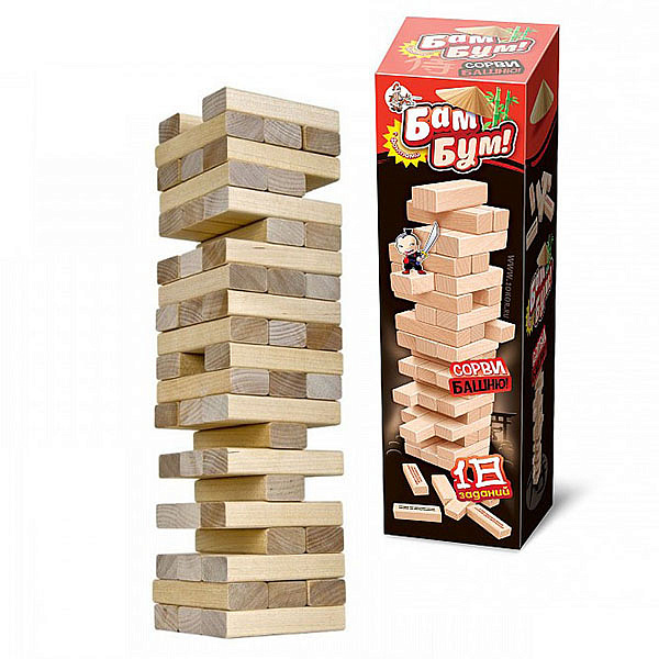 Настольная игра «Падающая башня с фантами Бам-бум» предполагает хорошее настроение, шутки и веселье, а 18 забавных заданий сделает ее еще веселее и забавнее.