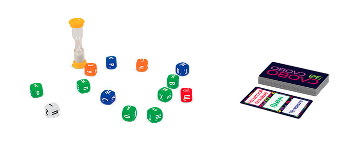 Слово за слово – это динамичная и оригинальная настольная игра в слова, которую мы вам спешим представить. Суть игры проста: бросаем кубики, засекаем 30 секунд и начинаем придумывать слова, которые начинаются на одну из выпавших на кубиках букв. Слова повторять нельзя, задействованную букву игрок забирает себе. Чем более редкая буква, тем больше очков получит игрок. Темы для придуманных слов определяются заранее с помощью карточек.