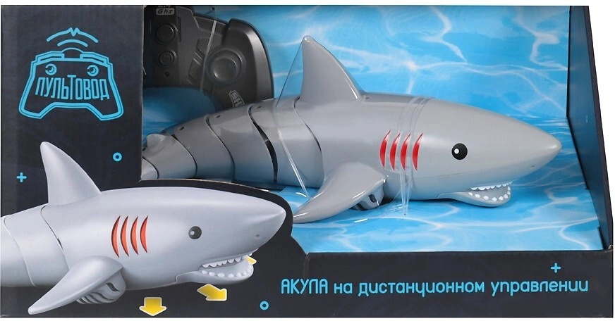 Водоплавающая игрушка на дистанционном радиоуправлении «Акула» не оставит равнодушным ни одного ребёнка! Акула с реалистичными движениями и двойным мотором, может шустро плыть вперёд, назад, поворачивать налево и направо. Наблюдать за тем, как акула шустро рассекает водную гладь, очень весело и интересно! Рекомендуется запускать игрушку в закрытых водоёмах или в бассейнах.