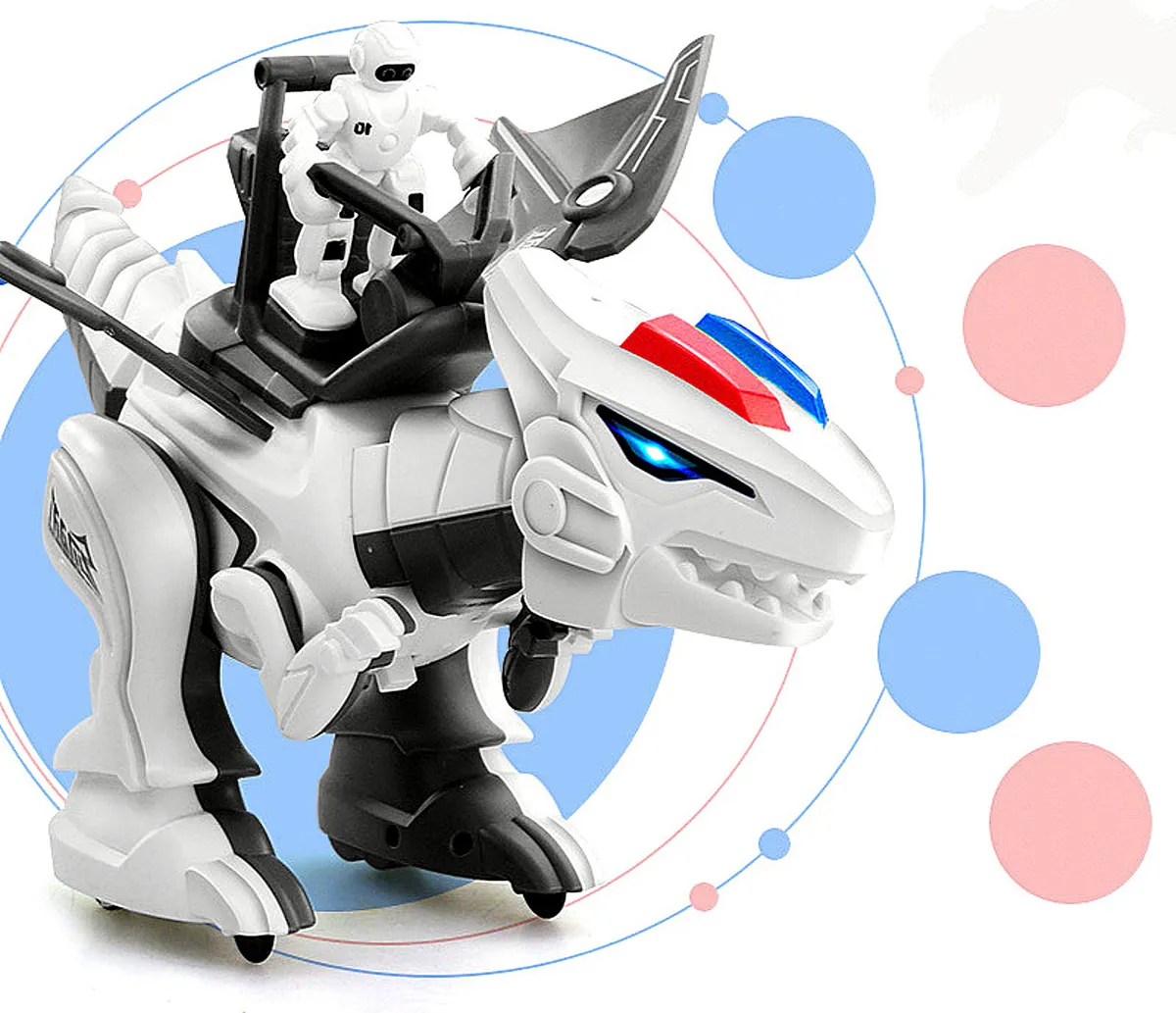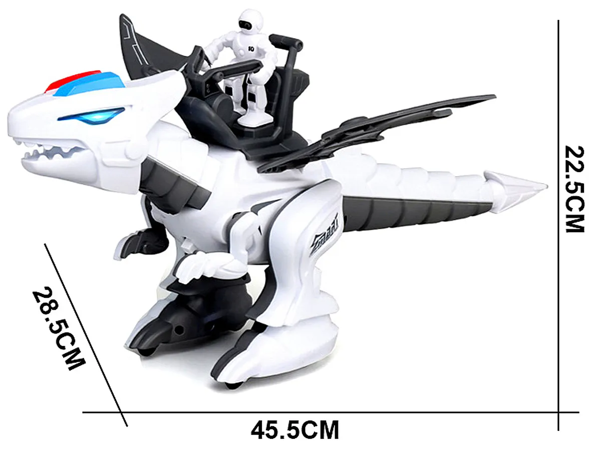 Он умеет вращать головой, зажимать в челюстях легкие предметы и играть с ними как щенок. Подвижный хвост, который так же показывает эмоции рептилии. Робот обладает сенсорными датчиками, умеет кусать. Игрушка очень понравится ребенку, он почувствует себя в мире будущего, где на земле снова обитают динозавры с искусственным интеллектом.