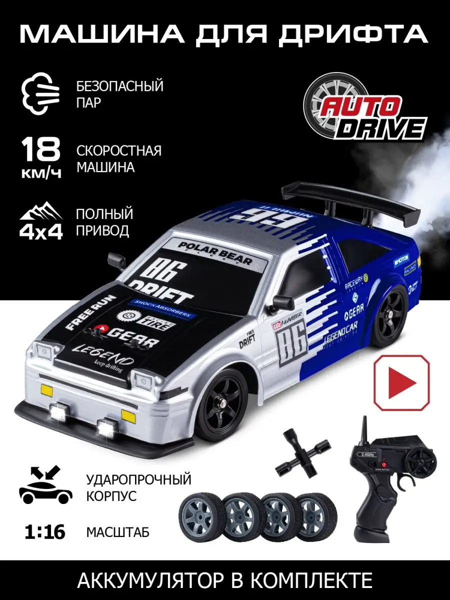 Машинка на радиоуправлении HB Toyota AE86, Дрифт 4WD с паром SC16A07-1