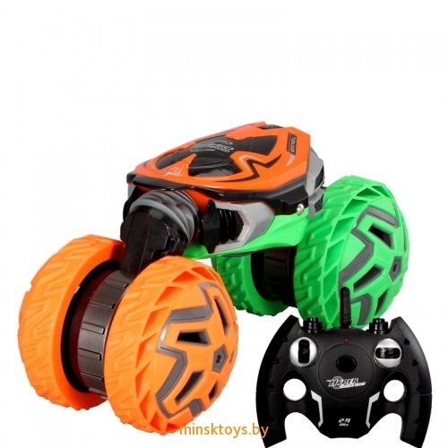 Акробатический радиоуправляемый внедорожник-перевертыш с изменяемым дорожным просветом! В дорожной конфигурации способен мчаться по асфальту со скоростью 7 км/час, а благодаря сферическим колпакам колес можно легко научиться ездит на двух колесах. Даже если машина перевернется, она сможет спокойно ехать в перевернутом состоянии, колеса настолько огромны, что кузов в любом положении не касается земли!