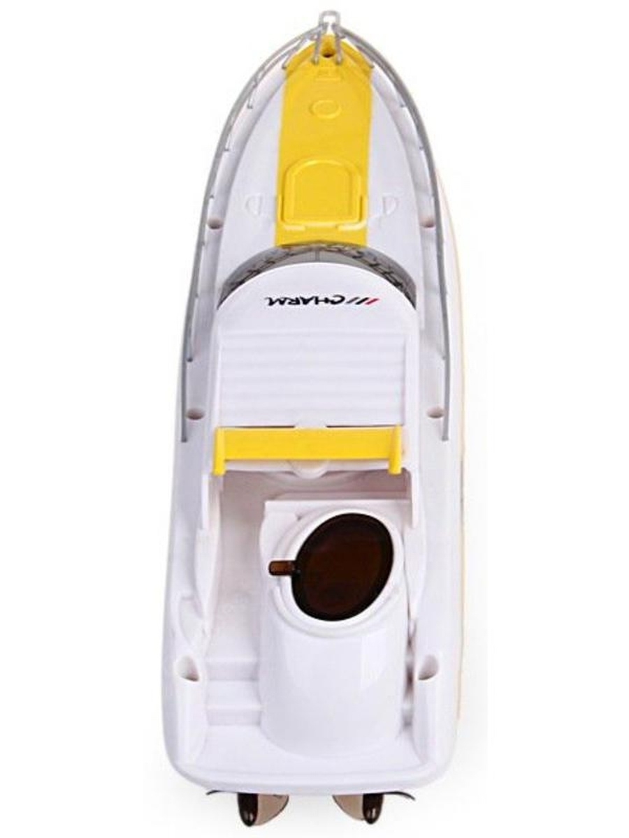 Катер имеет очень простое управление. С ним справится даже самый юный капитан. Катер может перемещаться вперед и назад, поворачивать влево и вправо. С помощью пульта может вращаться на месте вокруг своей оси на 360 градусов. В пульте управления используются 2 батарейки типа ААА (необходимо докупить отдельно), в катер встроен аккумулятор. Дальность действия пульта до 5 метров. Зарядка происходит через специальный USB-шнур. Время зарядки 35 минут, время игры 5 минут. Частота управления 2.4 GHz. В наборе два дополнительных пропеллера. Превратите каждый поход малыша в ванную в увлекательное водное приключение! Скромные габариты позволяют играть с миниатюрным катером даже в ванне! К сожалению, из-за маленьких размеров аккумулятора время работы подводной лодки составляет 5 мин. Размер: 19х6.5х5 см.