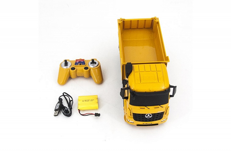 Радиоуправляемый самосвал Mercedez-Benz Actros - лицензионная копия грузовика самосвала Mercedez-Benz от компании Double Eagle. Корпус модели полностью повторяет оригинальную машину: яркий жёлтый кузов и большие колёса. Кузов выполняет свою реальную функцию — он поднимается и опускается.