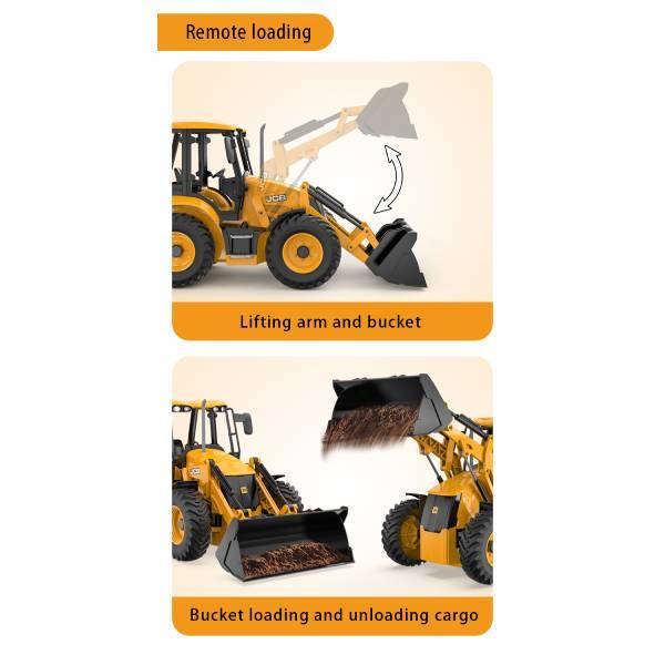 Этот радиоуправляемый экскаватор-погрузчик полностью функционален и все его действия могут быть управляемы с пульта. Он может двигаться вперед, назад, вправо и влево, прекрасно передвигаясь по почти любым поверхностям. Принцип движения этой модели полностью повторяет настоящую строительную технику, создавая удивительное ощущение реализма.
