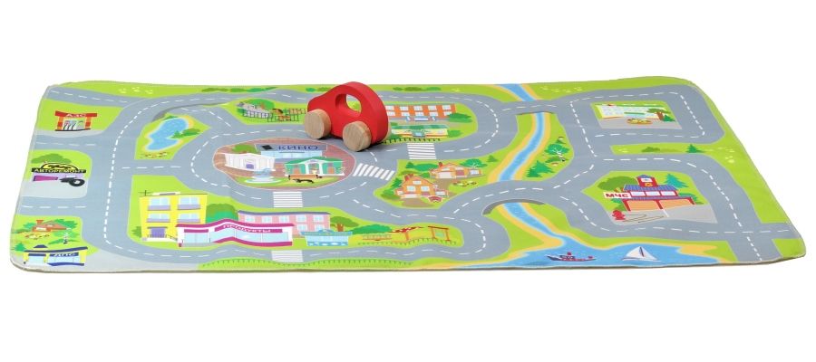 На старт, внимание, вж-ж-ж! Готовы устроить настоящие уличные гонки? Если Ваш ребенок обожает автомобили, дорожное движение и соревнования на скорость, такая игра - то, что вам нужно! Игровой набор «Автодорога» создан для детей от 3 лет. Текстильный коврик-карту (71х54 см.) можно разместить на полу или на столе. Ребенок может играть самостоятельно или посоревноваться с другом - комплект включает 2 деревянные машинки. На улицах изображенного города можно устроить гонки, учиться правилам дорожного движения, а также играть в пожарника, врача скорой помощи, полицейского или спасателя, ведь на коврике-карте все как в жизни: есть больница, пост ДПС, магазины и даже кинотеатр! Игра «Автодорога» увлекает детей, дает большой простор для фантазии, формирует логическое мышление, а во время активных поездок по городку - развивает моторику рук и учит общаться с товарищами по игре. В состав игры входят: