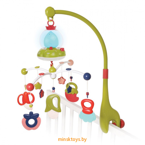Мобиль устанавливается на детскую кроватку с помощью специального надёжного крепления.