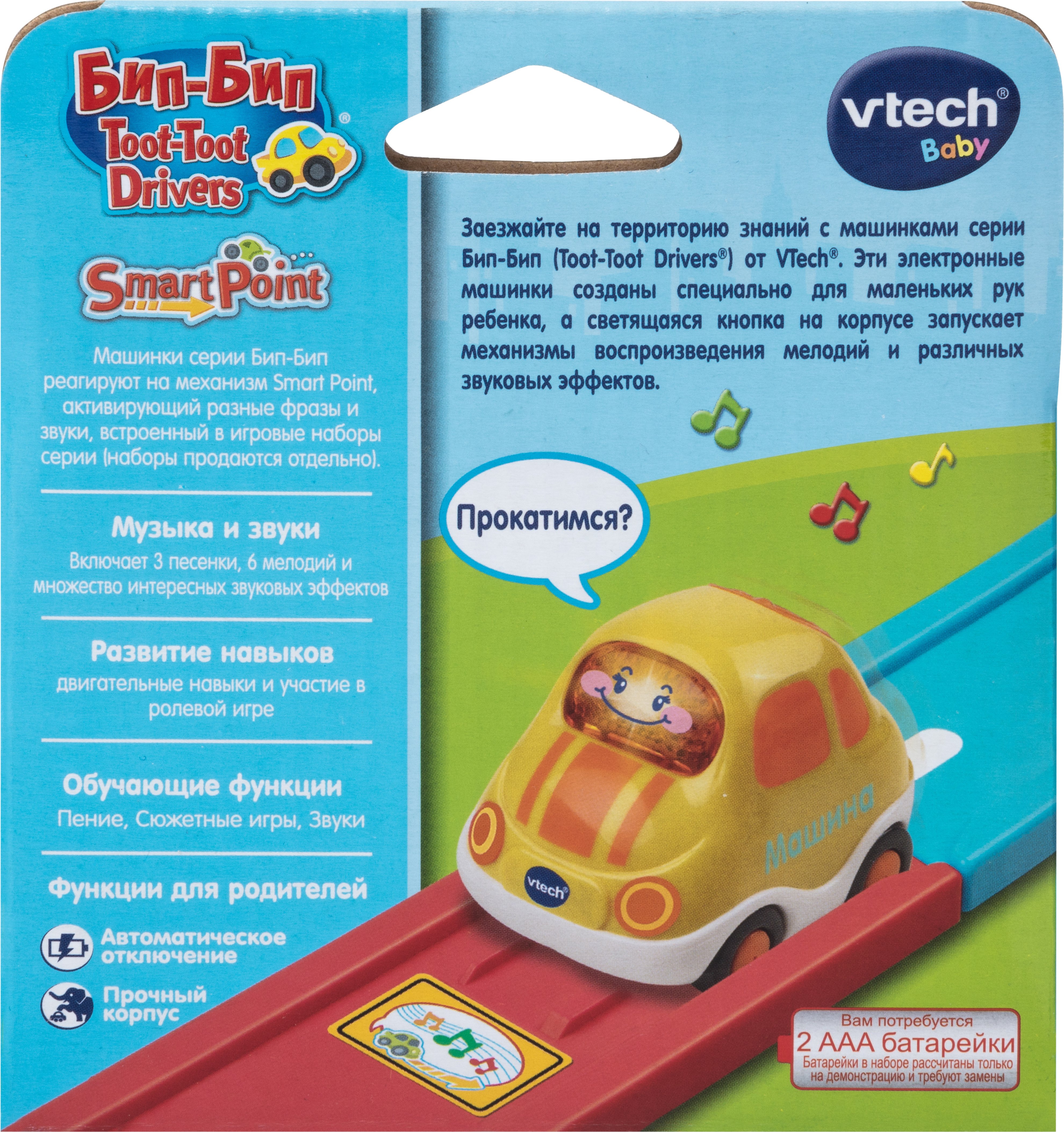 Уникальная серия умных электронных транспортных средств и игровых наборов Бип-Бип Toot- Toot Drivers! Серия, завоевавшая сердца детей и родителей по всему миру. Серия - обладательница множества профессиональных международных наград! Игрушки и игровые наборы Бип-Бип Toot-Toot Drivers входят в списки бестселлеров по всему миру. Каждое транспортное средство серии снабжено технологией SmartPoint, разработанной компаний VTech, позволяющей игрушкам проигрывать мелодии, песенки, произносить различные фразы и звуки, делая обучение и познание важных навыков увлекательным для ребенка за счет создания творческой атмосферы игры.