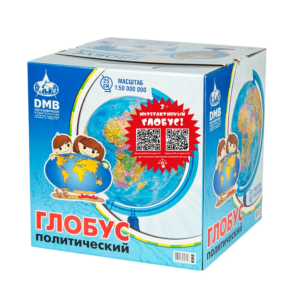 Глобус упакован в красочную подарочную упаковку. Не является учебным пособием. Правообладатель не гарантирует работу программы на всех моделях мобильных устройств.