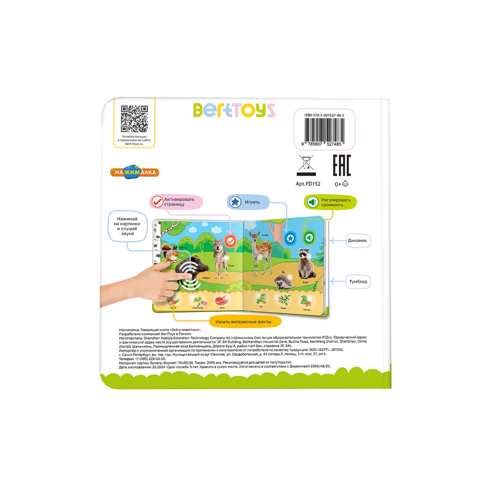Говорящая интерактивная книжка Всё о животных - Нажималка, BertToys FD152