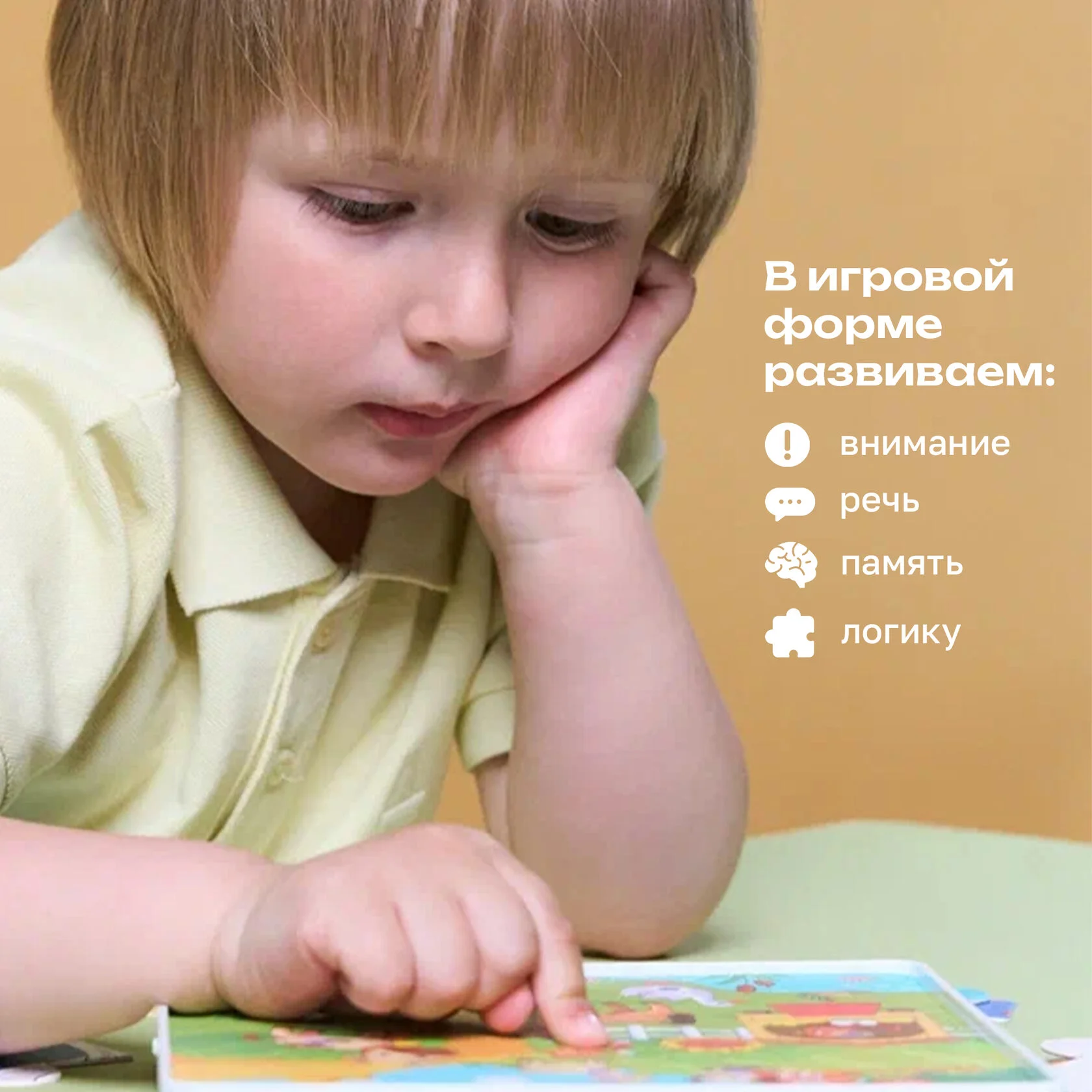 Безопасные материалы: ABS-пластик и картон. Компактный размер: удобно брать с собой. Не требует подключения к интернету или дополнительным устройствам. Способствует развитию памяти, речи и познавательных навыков. Знакомит ребенка с миром животных фермы. Сочетание классической игры-пазла с современными технологиями. Долговечность использования: интересно детям разных возрастов. Простота использования: интуитивно понятно даже маленьким детям.