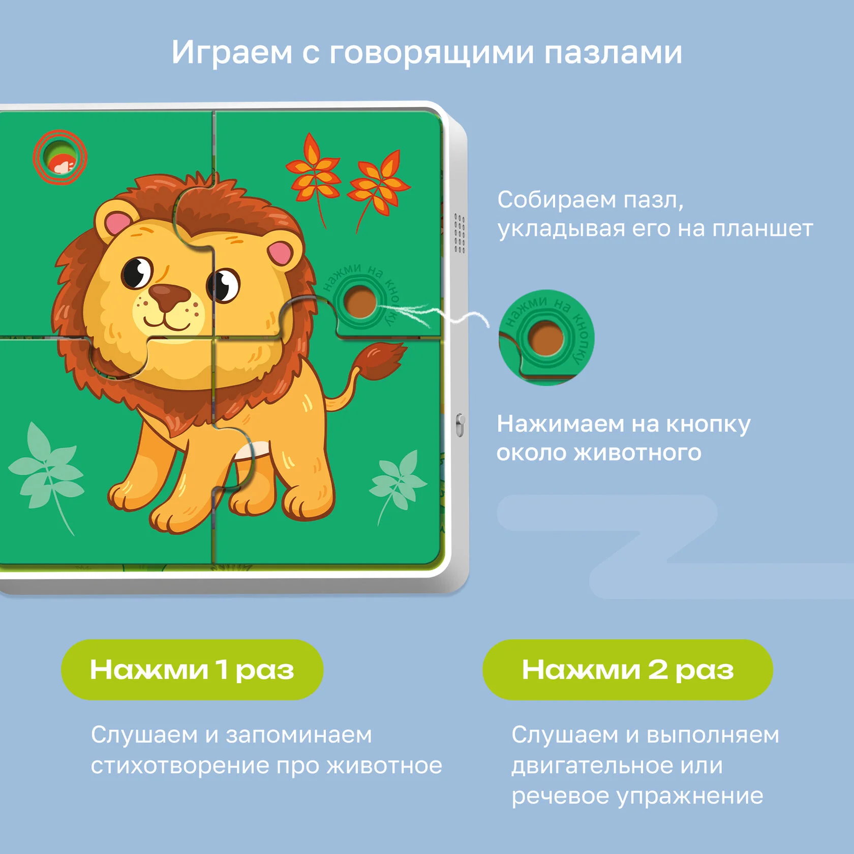 Интерактивный планшет, Говорящие пазлы - 9 шт., 3 батарейки ААА, Инструкция |