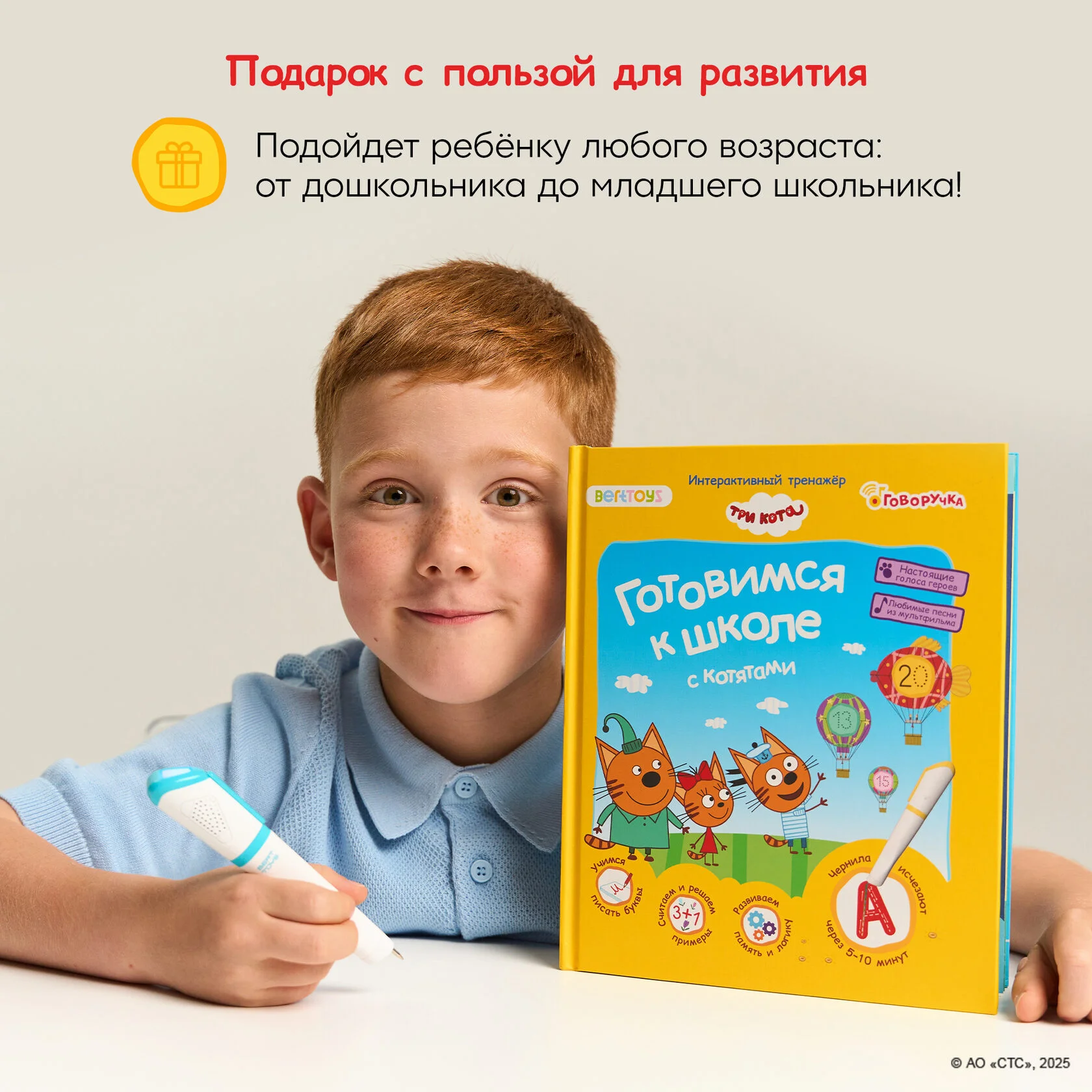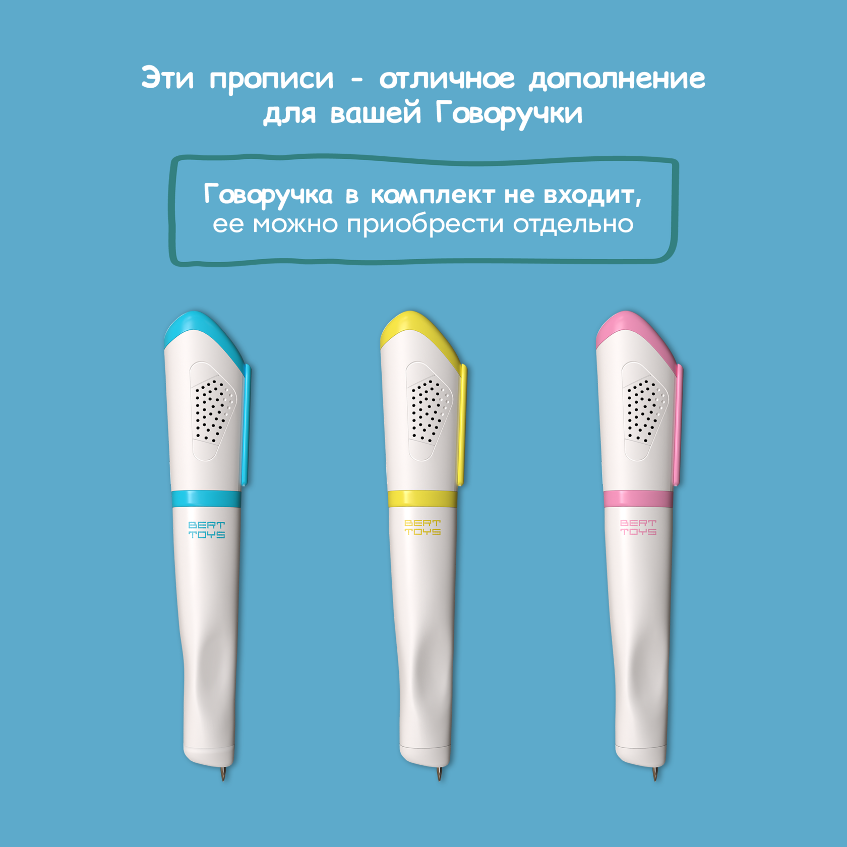 Говоручка быстро обучает навыкам письма, озвучивает все изображения и тексты в книге, самостоятельно дает задания для практики написания, а чернила исчезают, позволяя писать заново.