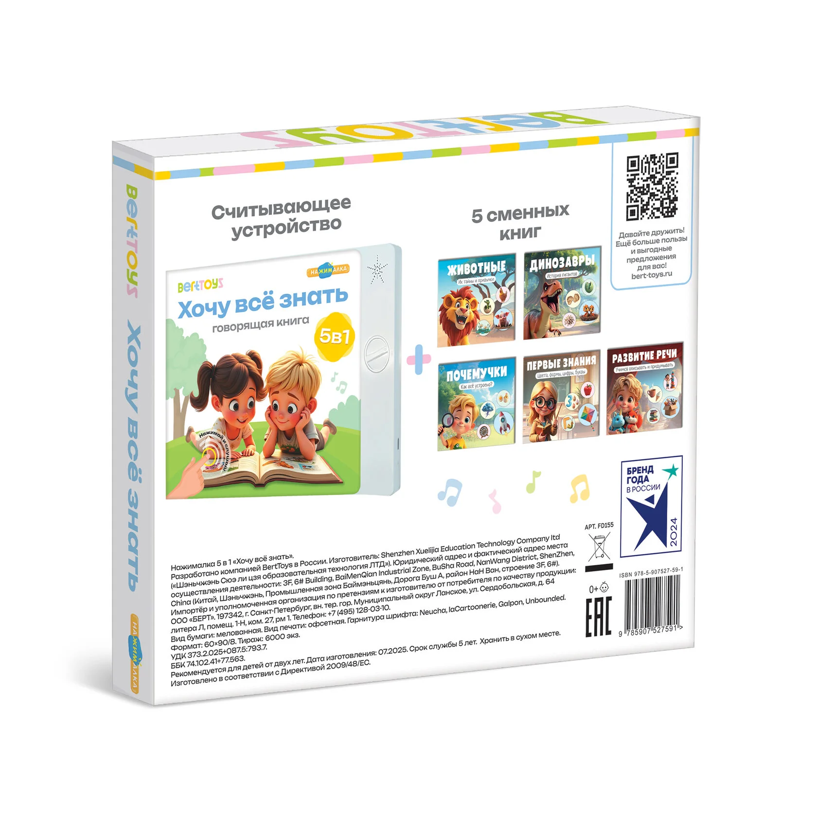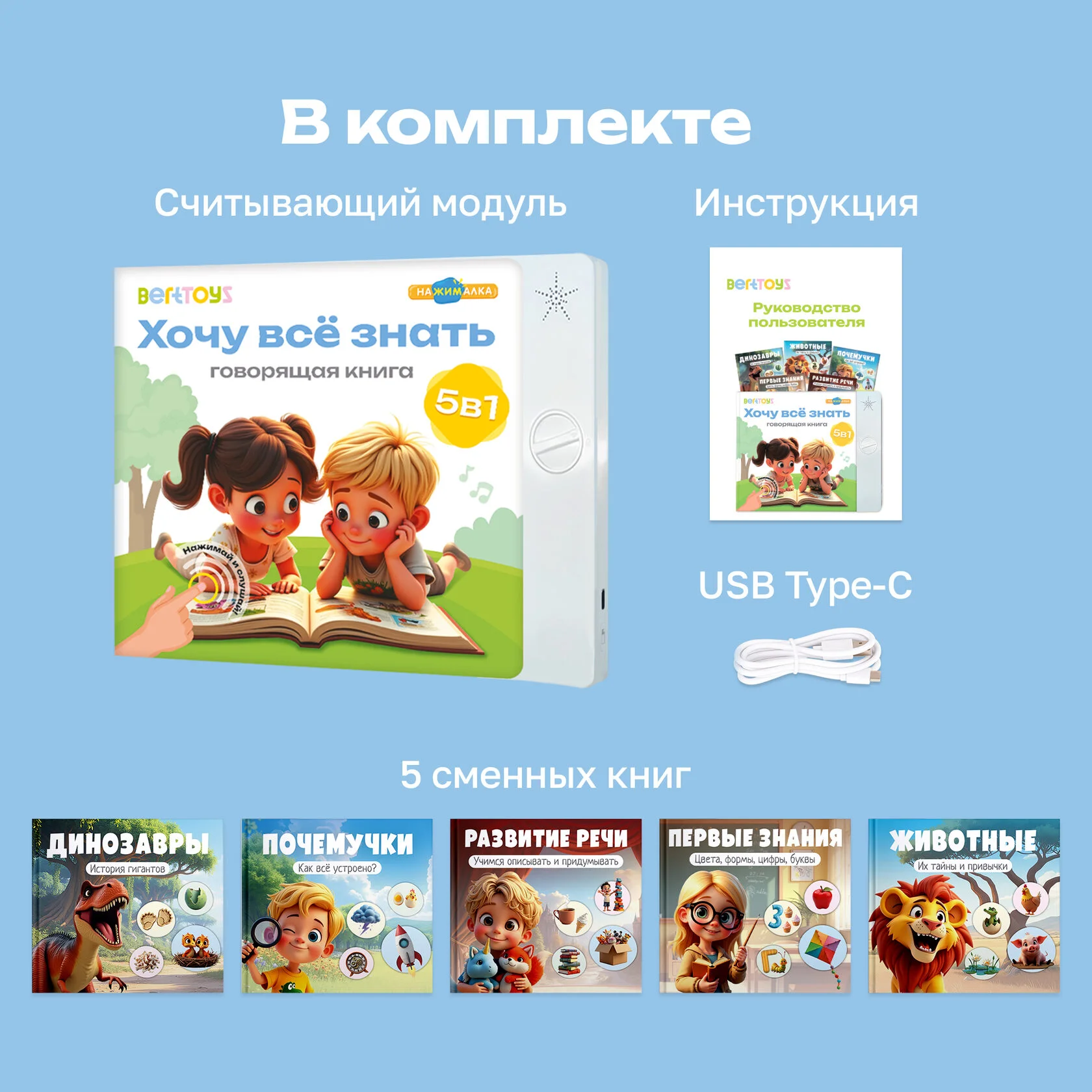 Говорящая интерактивная книжка - Нажималка 5 в 1 Хочу всё знать, BertToys FD155