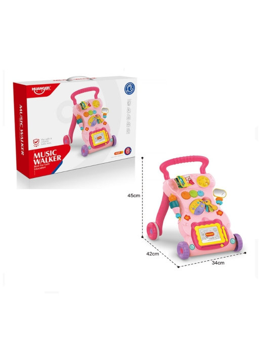 Ходунки детские Music Walker розовые - каталка Бизиборд для малышей, Huanger HE0823