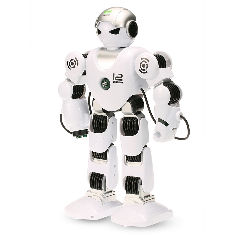 Он может: ходить, стрелять, драться, проигрывать музыку и танцевать. Маленький да удаленький. Кстати, о габаритах, они составляют 390 x 260 x 120 мм, а вес 1005 грамм.