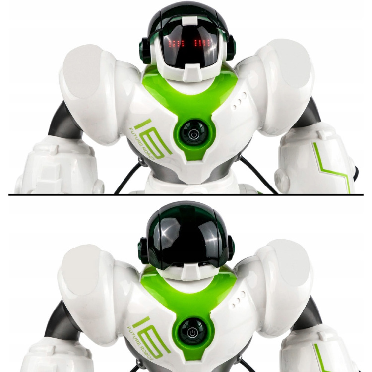 Корпус этого богатыря выполнен из экологически чистого пластика, а глаза подсвечиваются светодиодными лампочками.
