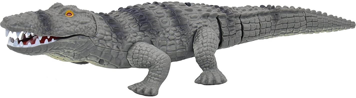 - Модель имеет звуковые эффекты. При нажатии кнопки на пульту ДУ игрушка готова издать грозное рычание! Играть с таким подвижным и реалистичным крокодильчиком – одно удовольствие.