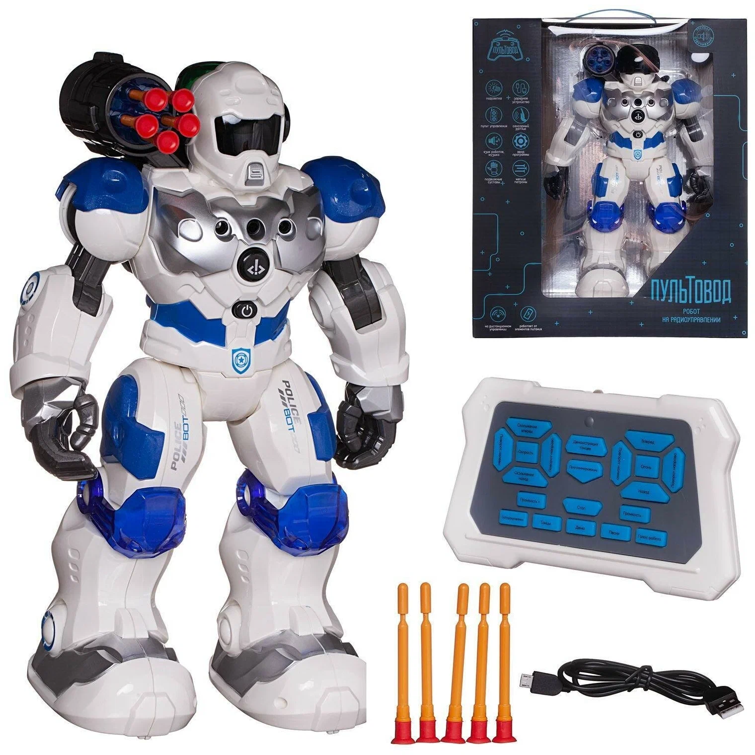 Характеристики робота полицейского на пульте управление стреляющего ракетами: