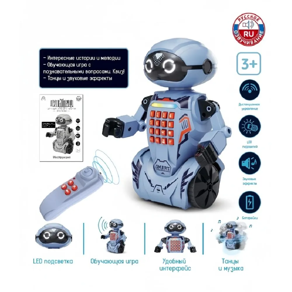 Электронный танцующий робот не только развлекает, но и способствует развитию внимания и слухового восприятия. Его можно легко брать с собой в гости, на прогулку или весело играть дома. Этот робот станет отличным подарком на день рождения, 23 февраля, Новый год и другие праздники, и обязательно вызовет восторг у детей благодаря своему милому внешнему виду и множеству функций.