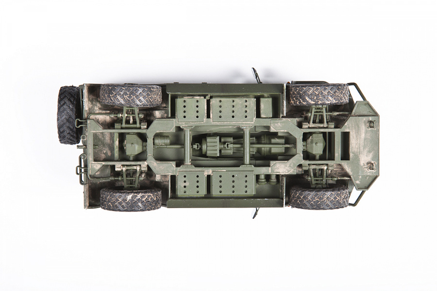 Набор деталей из пластмассы для сборки одной модели бронеавтомобиля.