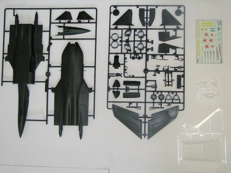 Набор деталей из пластмассы для сборки одной модели самолета.