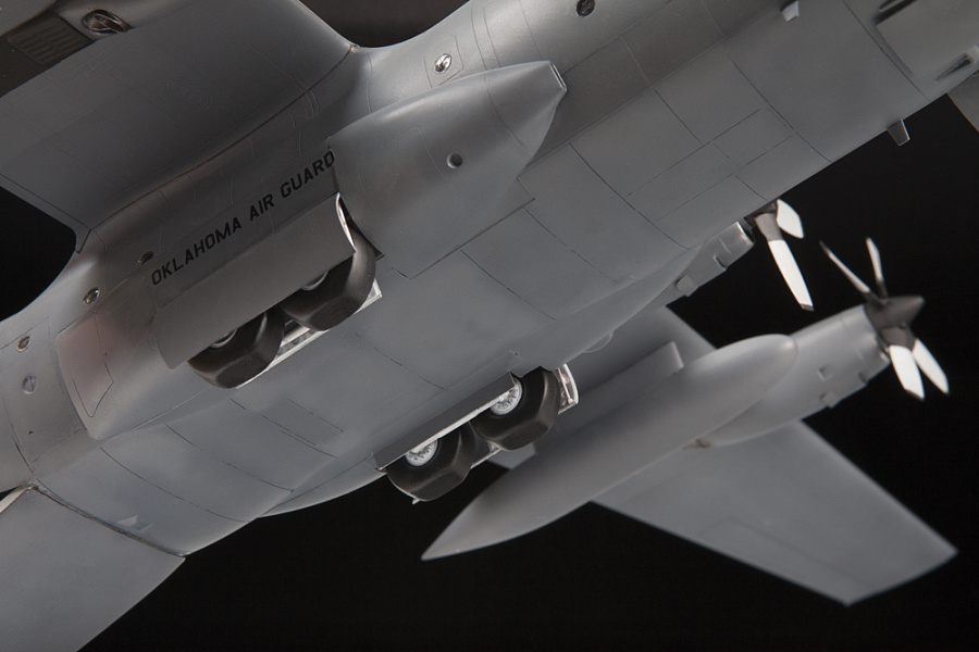 Особое место в этой линейке занимает самая массовая модификация — C-130H. Первый полет опытного образца данной версии состоялся еще в 1964 году, а серийное производство было развернуто уже в 1965. Эта модификация получила ряд ключевых усовершенствований, которые скрупулезно воспроизведены в деталях модели «Звезда». Среди них — новый усиленный кессон крыла, повышающий ресурс планера, усовершенствованные тормоза для работы на коротких ВПП, современная для своего времени новая авионика. Сердцем же самолета стала обновленная силовая установка с четырьмя турбовинтовыми двигателями Т56-А-15, обеспечивающими выдающуюся тяговооруженность и надежность.